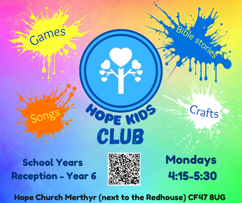 Hope Kids Club is our midweek after school club for all primary age children. We meet every Monday 4:30-5:30 at the Church building. All children are welcome to come along and join the fun! And it’s free!